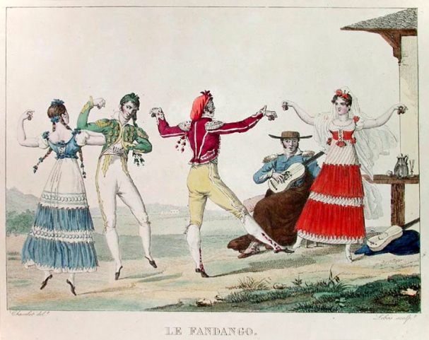 pandeiro ou palmas. O fandango pode ser cantado e dançado. O fandango cantado é