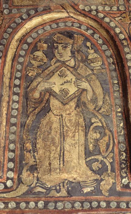um instrumento de percussão adufe, em uma pintura na Capella Patina.