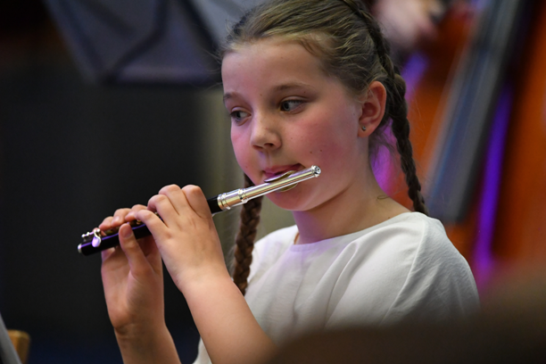 na música erudita moderna. Produz o som mais agudo da orquestra.