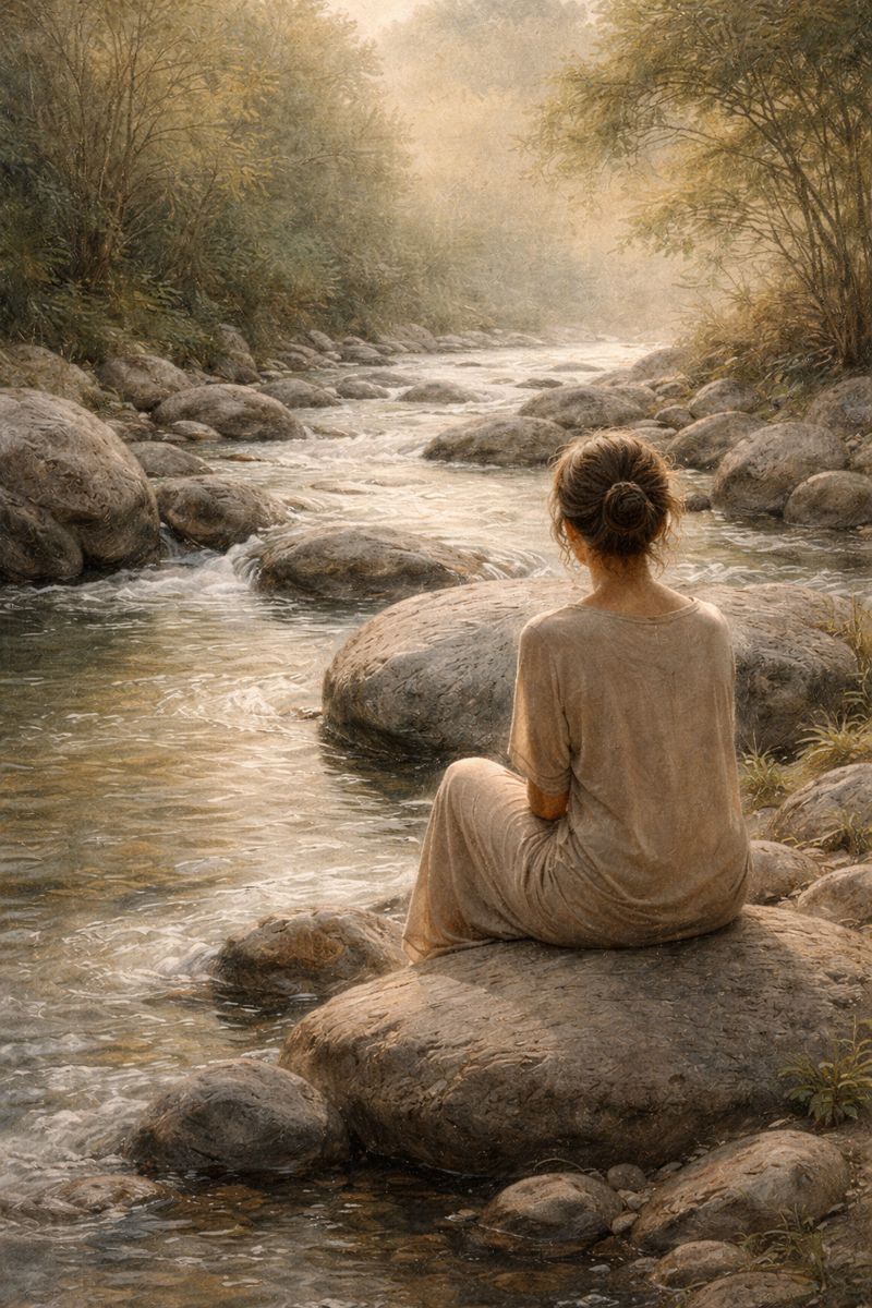 Mulher à beira do rio