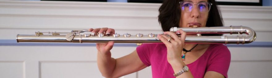 encontra uma oitava abaixo da flauta contralto em Dó (flauta mais