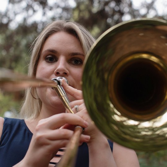 O trombone é um aerofone da família dos metais. É mais grave que o trompete e