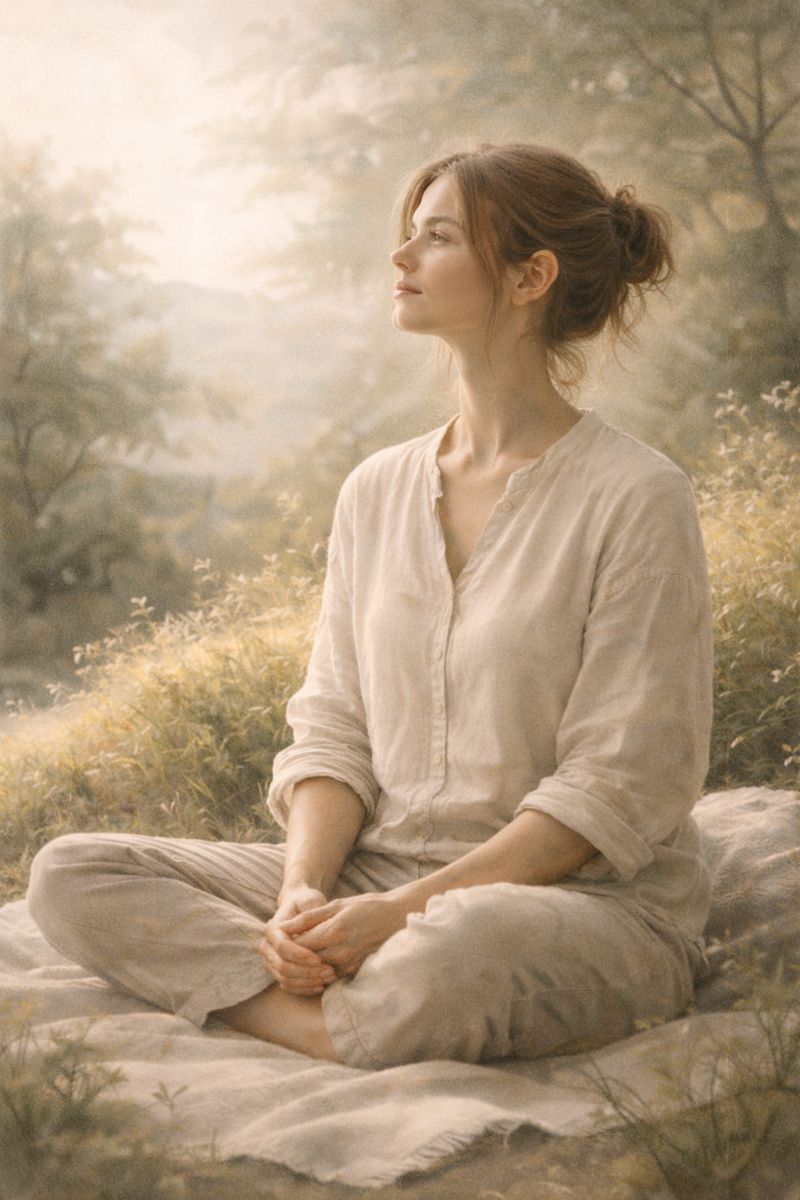 Jovem em meditação ao entardecer